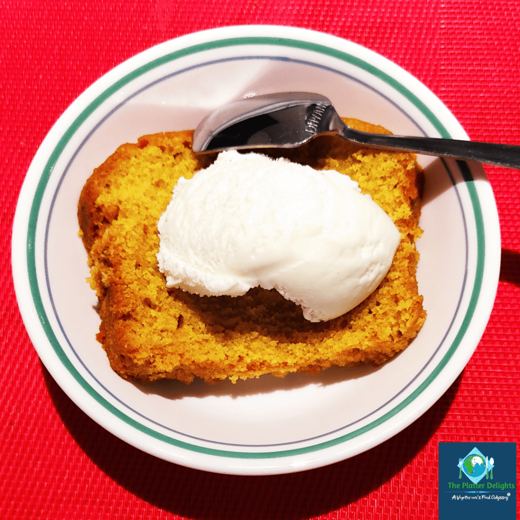 That’s it! A traditional English sponge tea cake with a delicately zesty orange twist is ready. I sprinkled a little icing sugar and served this cake with vanilla ice cream.